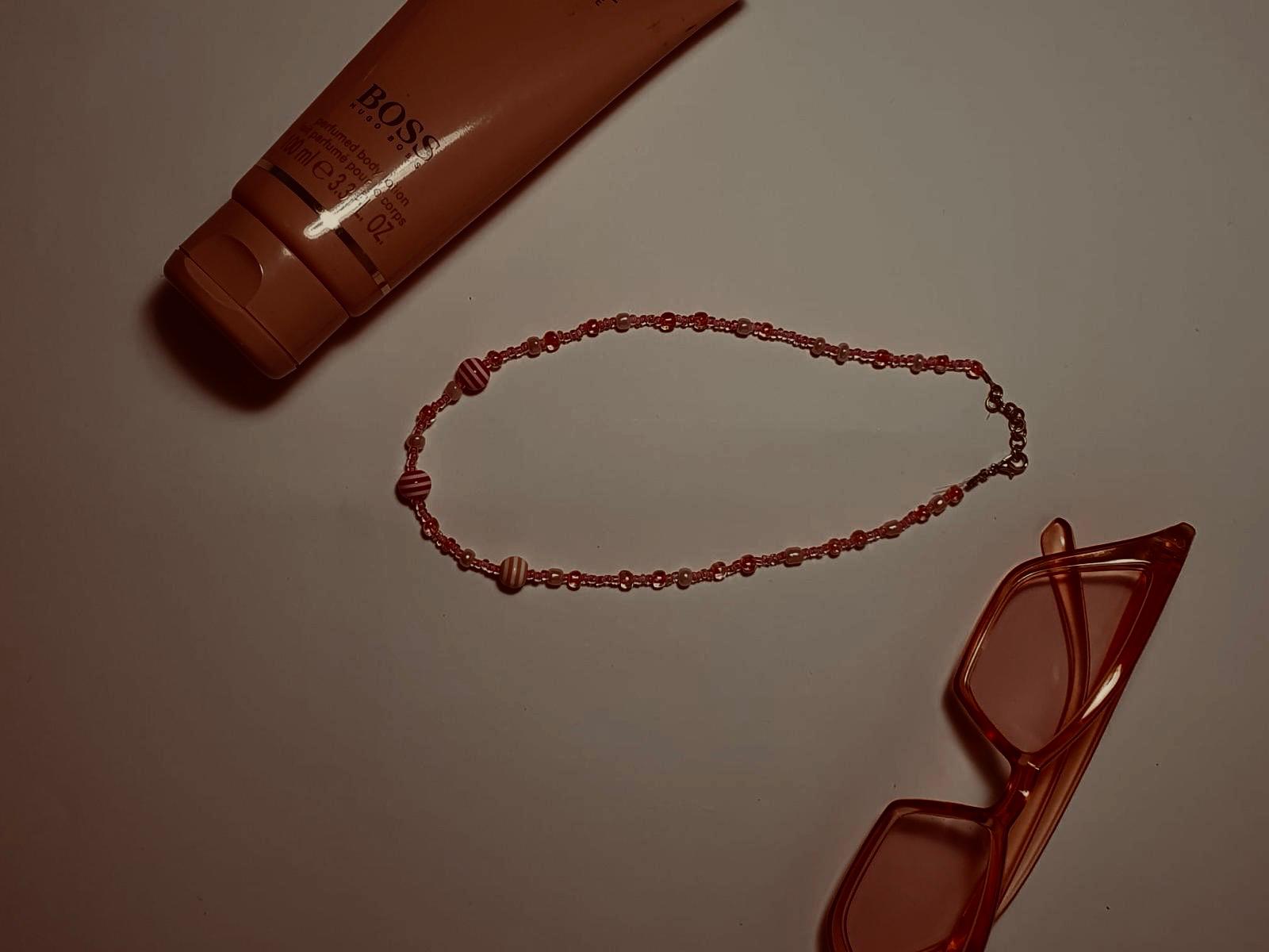 Lănțișor portocaliu din mărgele, realizat manual, vesel și ușor de asortat, perfect pentru a adăuga o notă vibrantă oricărei ținute.